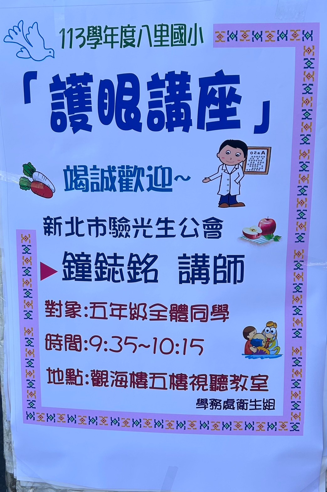 感謝八里國小的熱情接待,也感謝鐘理事長的用心講解。希望每位學童都能從今天的講座中獲得寶貴的知識,保護好自己的眼睛,讓視界更美好!