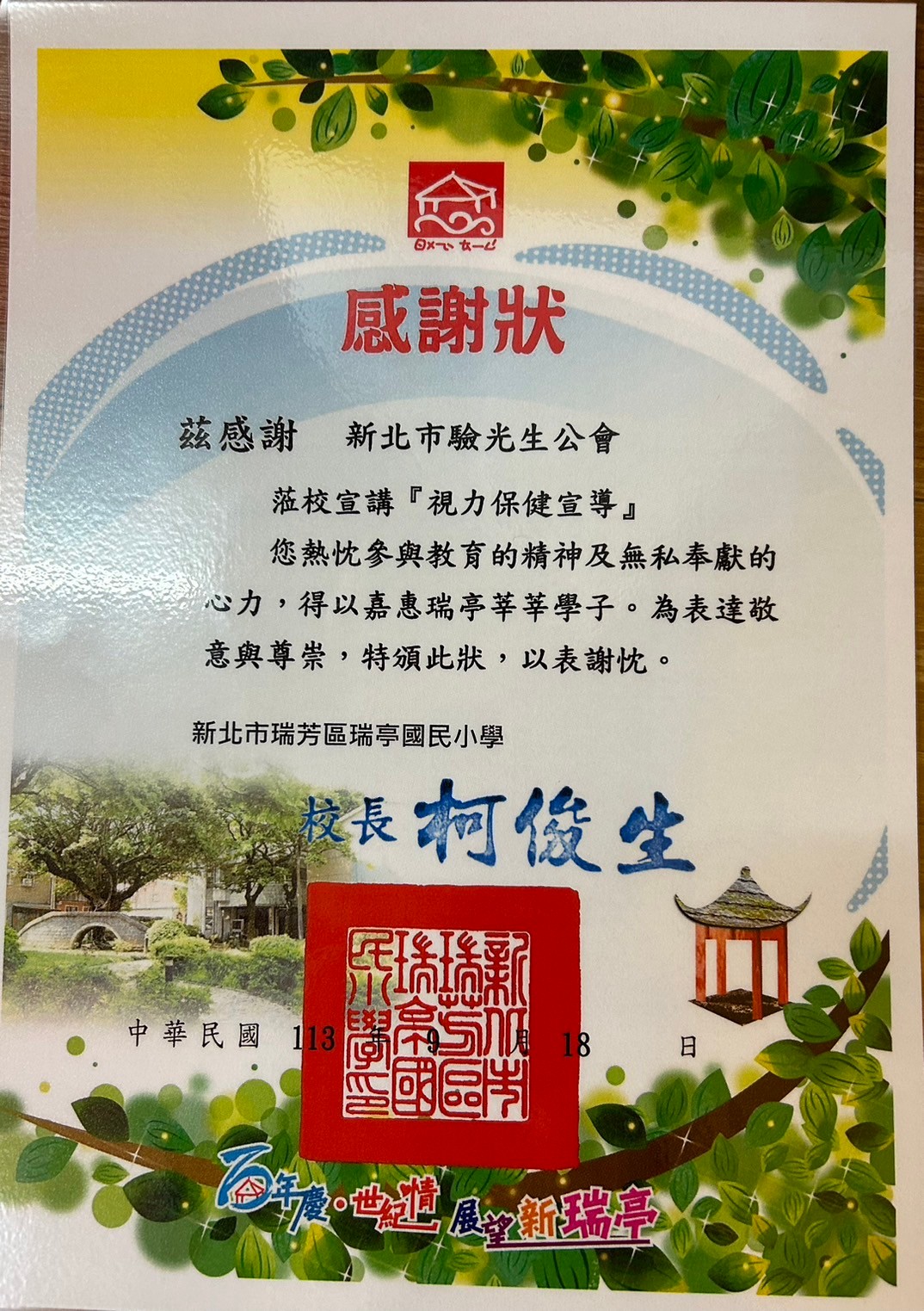 感謝瑞亭國小的熱情支持與合作,希望每位小朋友都能從中受益,讓視力更加明亮,學習更加愉快!