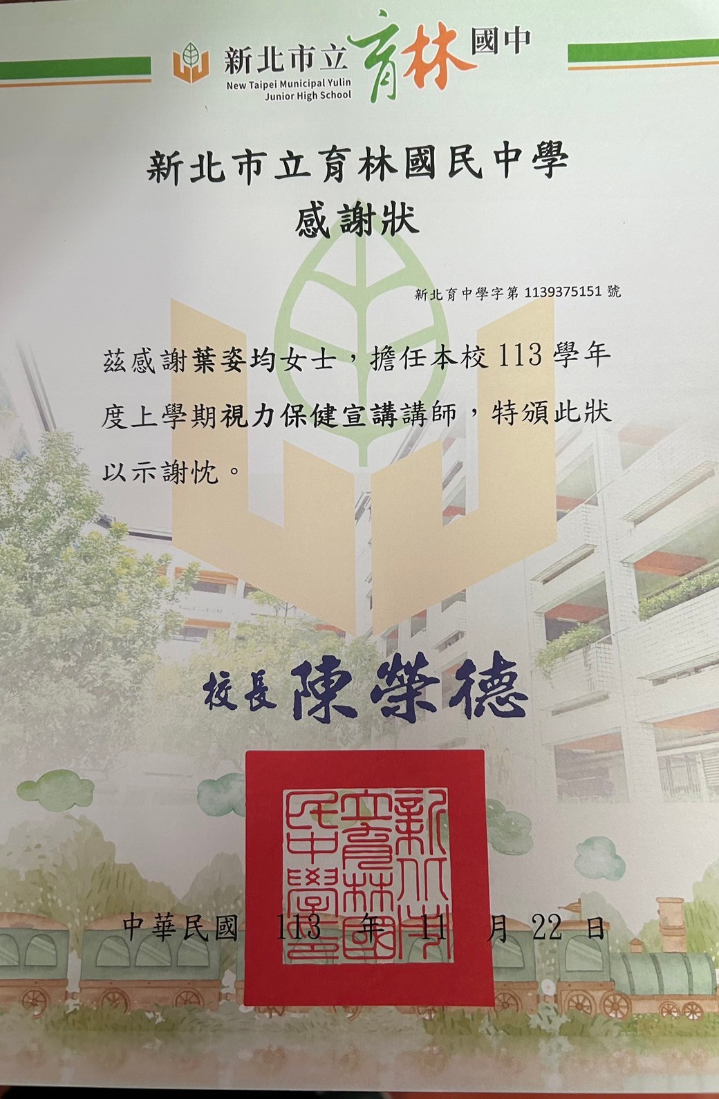 我們誠摯邀請您參加由監事長葉姿均擔任講師的精彩護眼宣導講座,一起來了解如何保護孩子的眼睛健康!