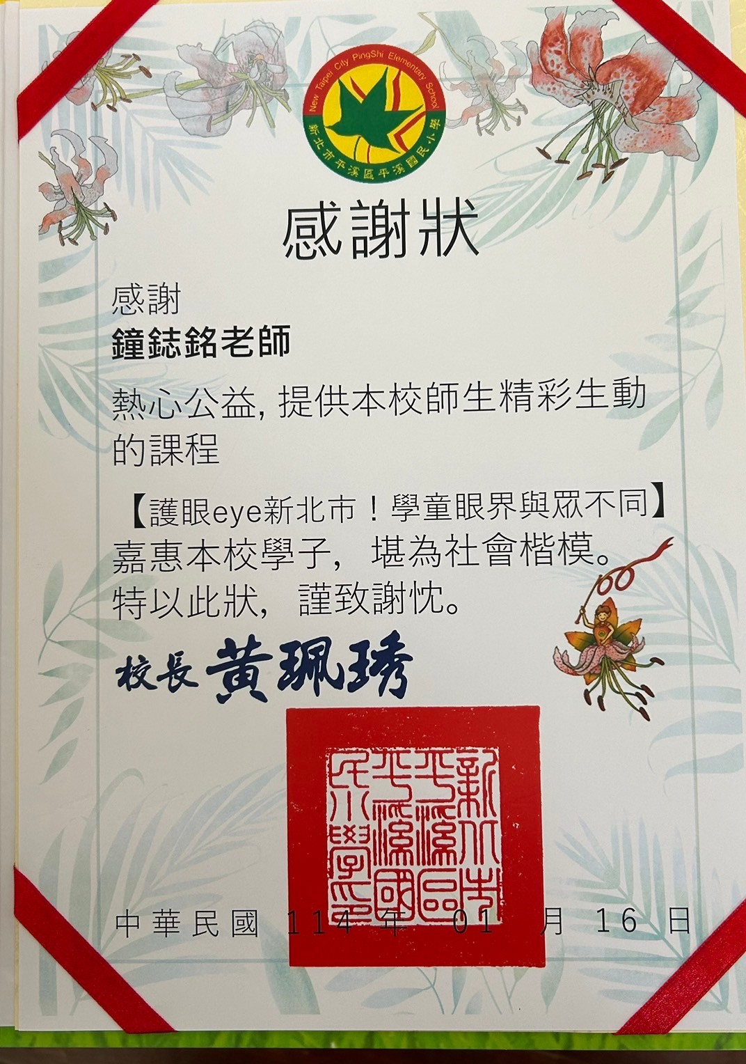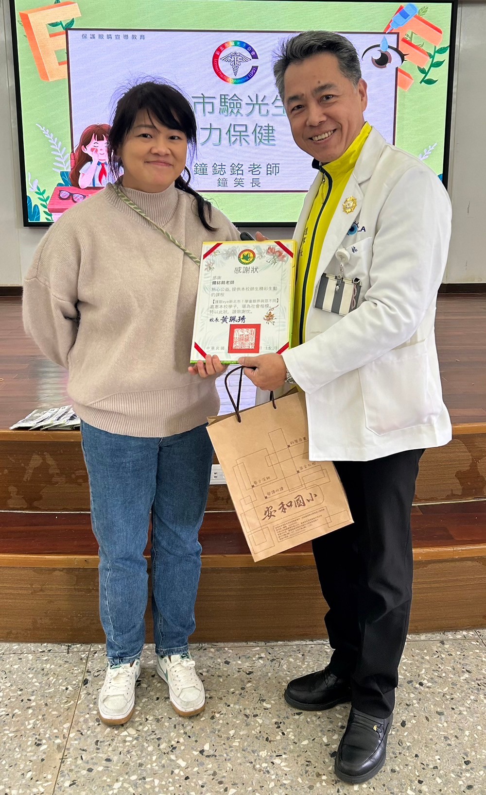 關注學童視力健康,為孩子們的未來把關!由講師理事長鐘鋕銘主講的護眼宣導講座,提升學童對視力健康的認識,幫助他們養成良好的護眼習慣。