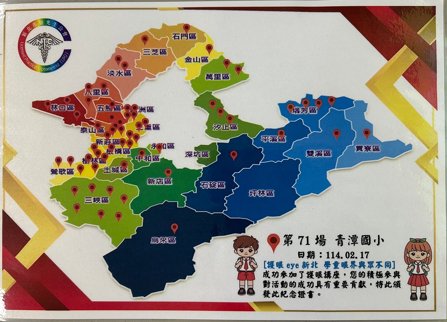 由理事長鐘鋕銘擔任講師,從樹林趕往新店,持續推廣護眼知識,幫助學童養成良好用眼習慣,讓每一雙明亮的眼睛都能清晰看見未來✨