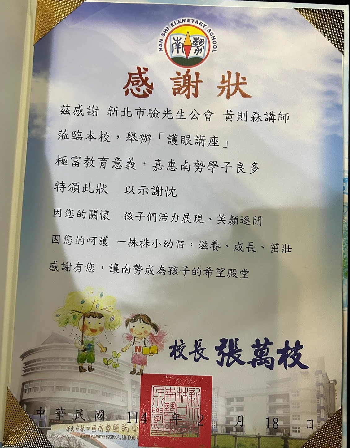 今天來到南勢國小,由黃則森講師帶領學童學習護眼知識,從日常習慣開始,守護孩子們的視力健康????????