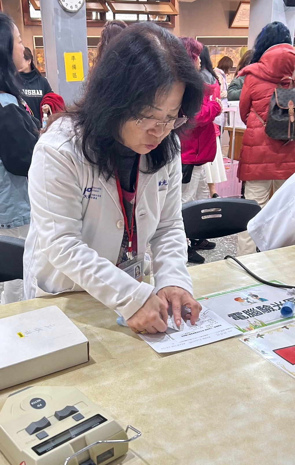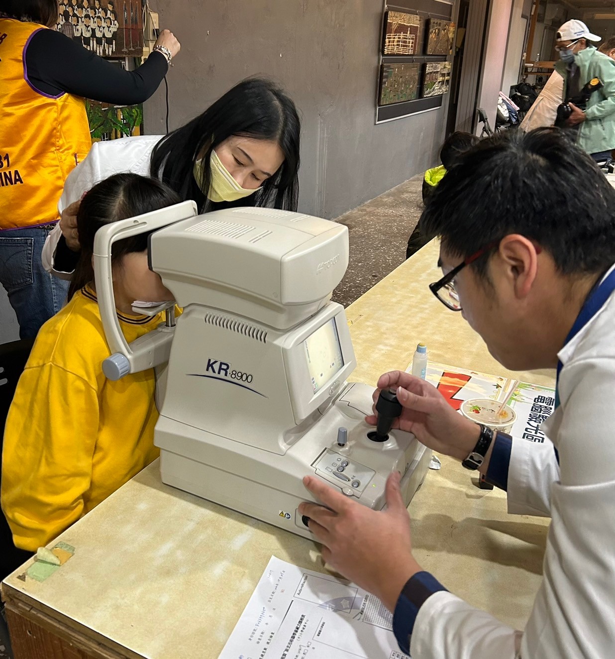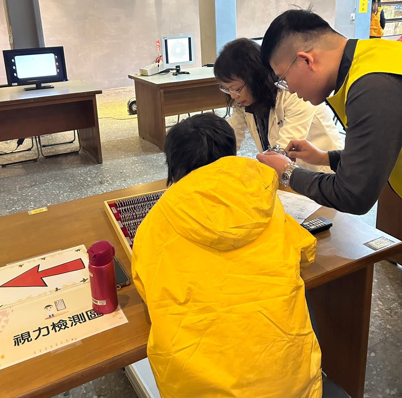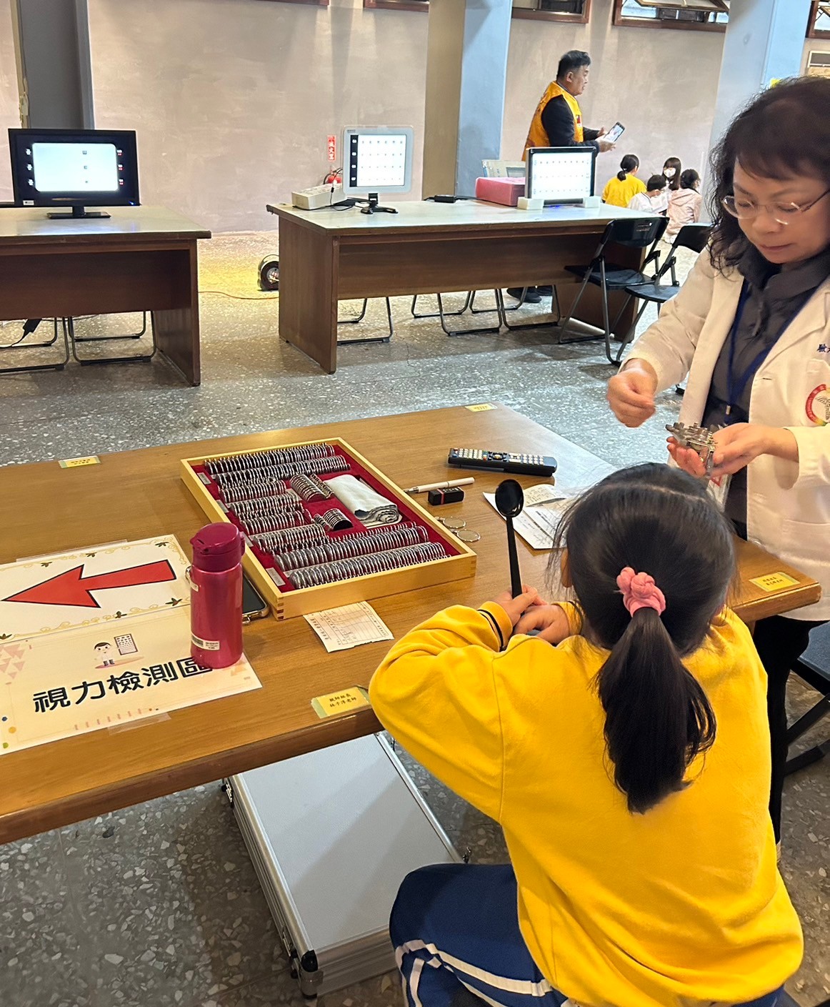 本次篩檢涵蓋自覺式驗光、他覺式驗光、原鏡視力測試、色盲篩檢、屈光檢查、利眼⋯多項檢測。在恩主公醫院王昱函醫師與本會專業團隊依照標準流程進行檢查,確保學童獲得準確的視力評估。醫師也特別提醒學童,養成良好的用眼習慣、定期檢查視力,才能有效預防近視與視力問題。驗光專業團隊們熱情協助,確保篩檢流程順暢,讓孩子們能夠輕鬆完成測試。