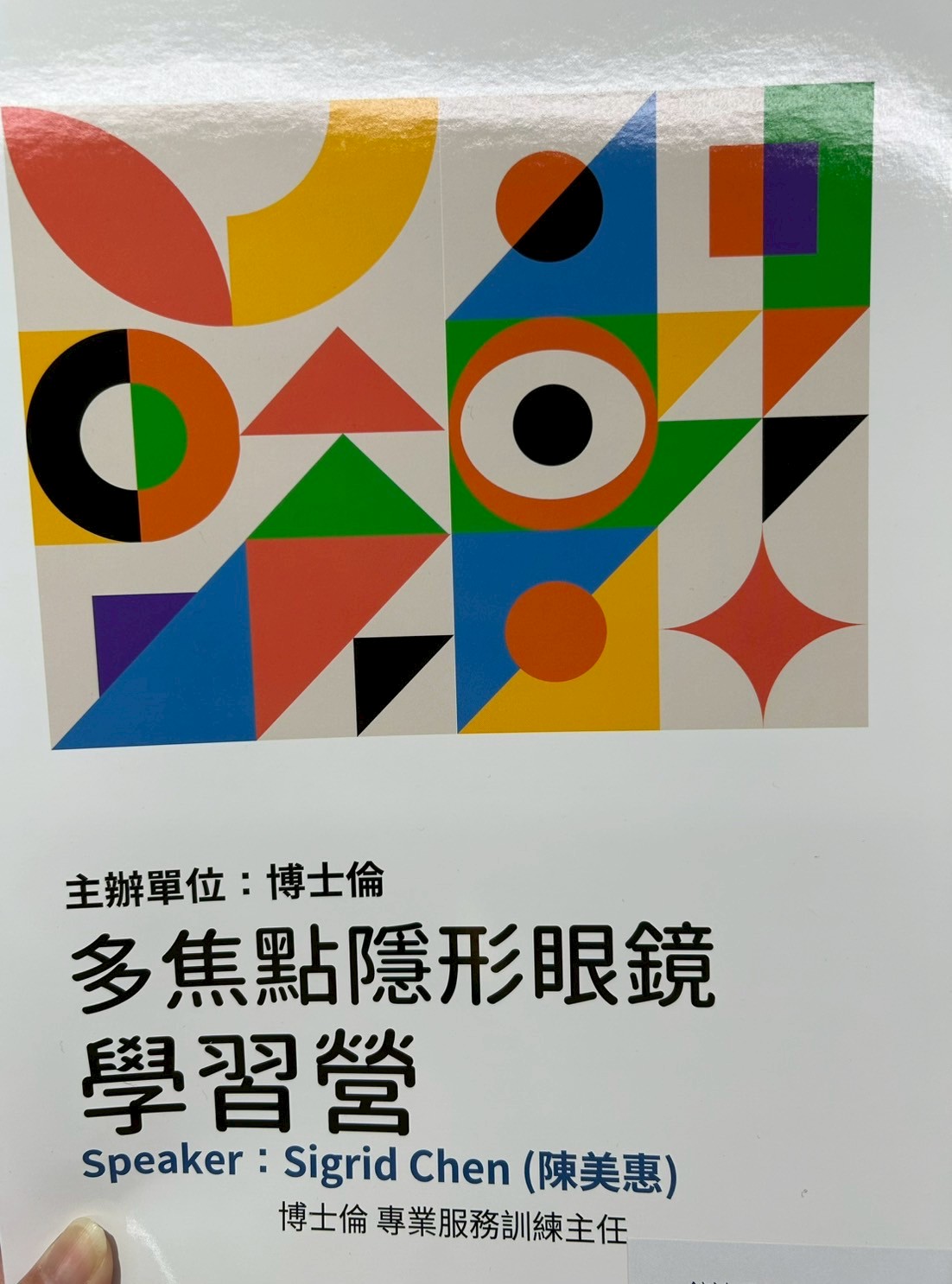 今日由 博士倫主辦、本會協辦 的「多焦點穩形眼鏡學習營」圓滿落幕!
