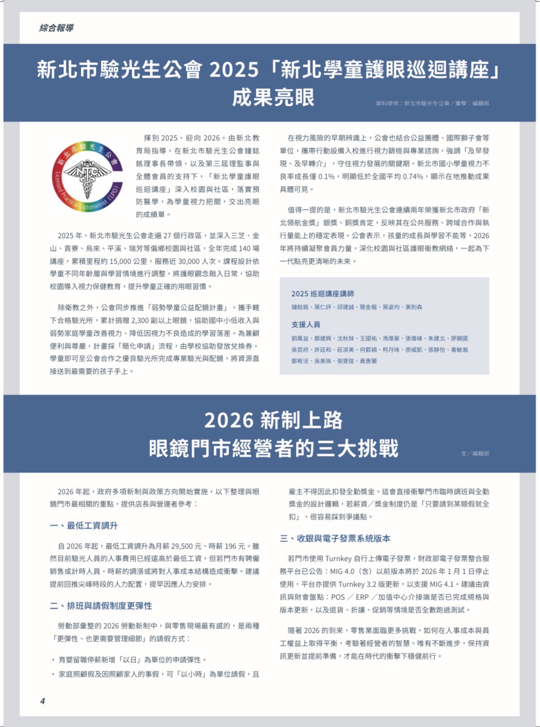 本會「2025 新北學童護眼巡迴講座」成果,獲《當代眼鏡雜誌》露出,提升國人對驗光專業與公共健康服務的肯定。