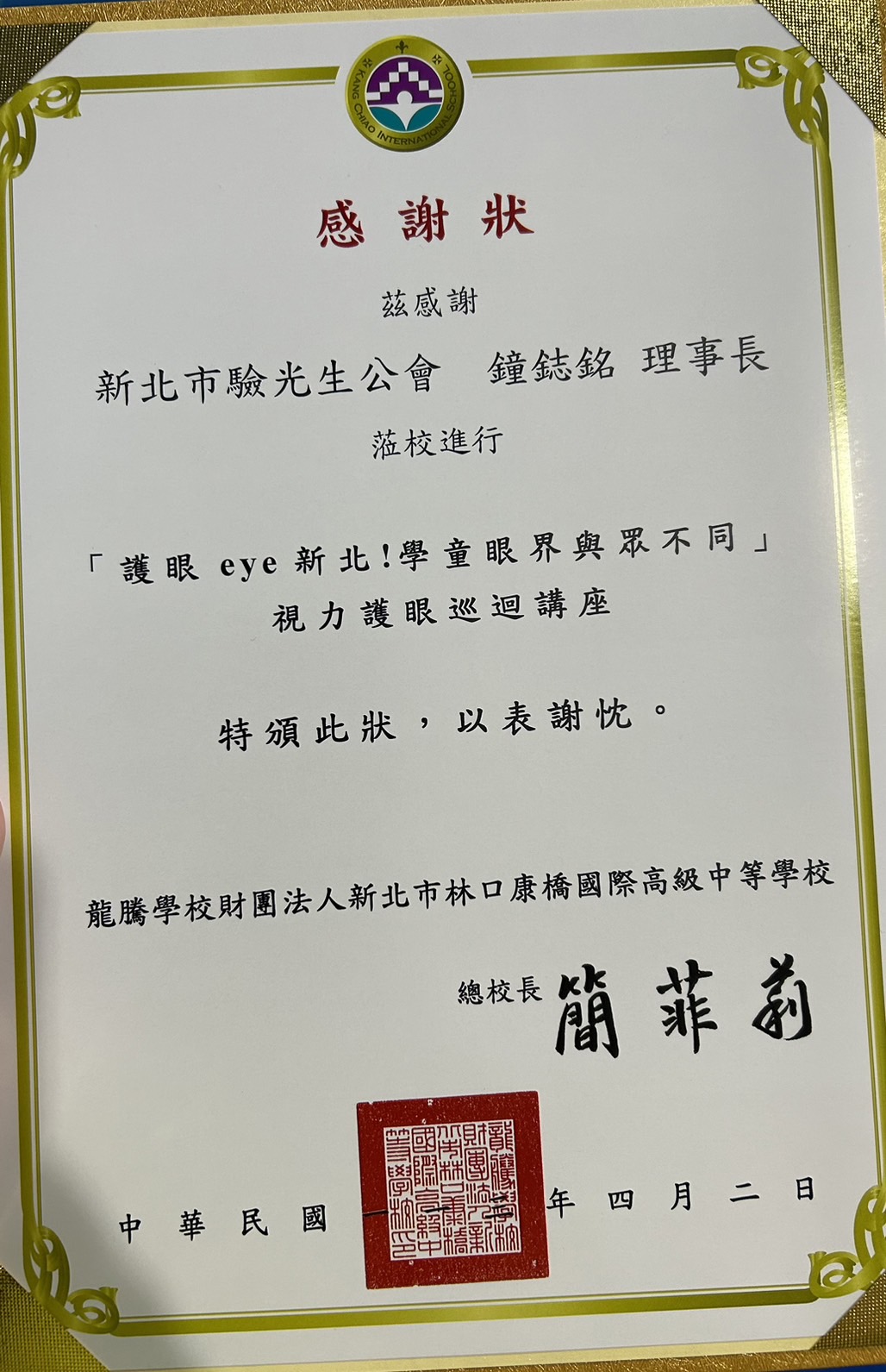 「護眼eye新北!學童眼界與眾不同」視力篩檢巡迴講座