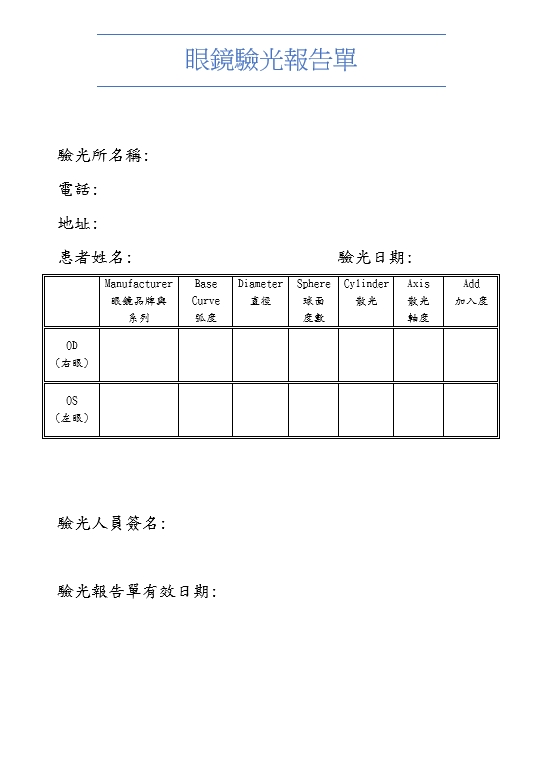 眼鏡驗光報告單