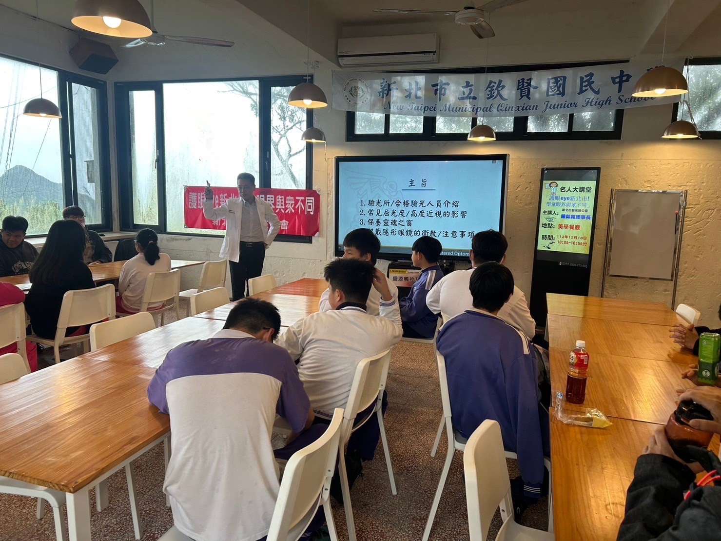 來到新北市瑞芳區「欽賢國中」視力保健講座,學校位九分熱區的山頂上~遠眺太平洋、隔壁是基隆山~視野開闊,有一群熱情、用心的老師和開朗活潑的同學,很開心有機會來到這個學校和同學們分享我們的專業。