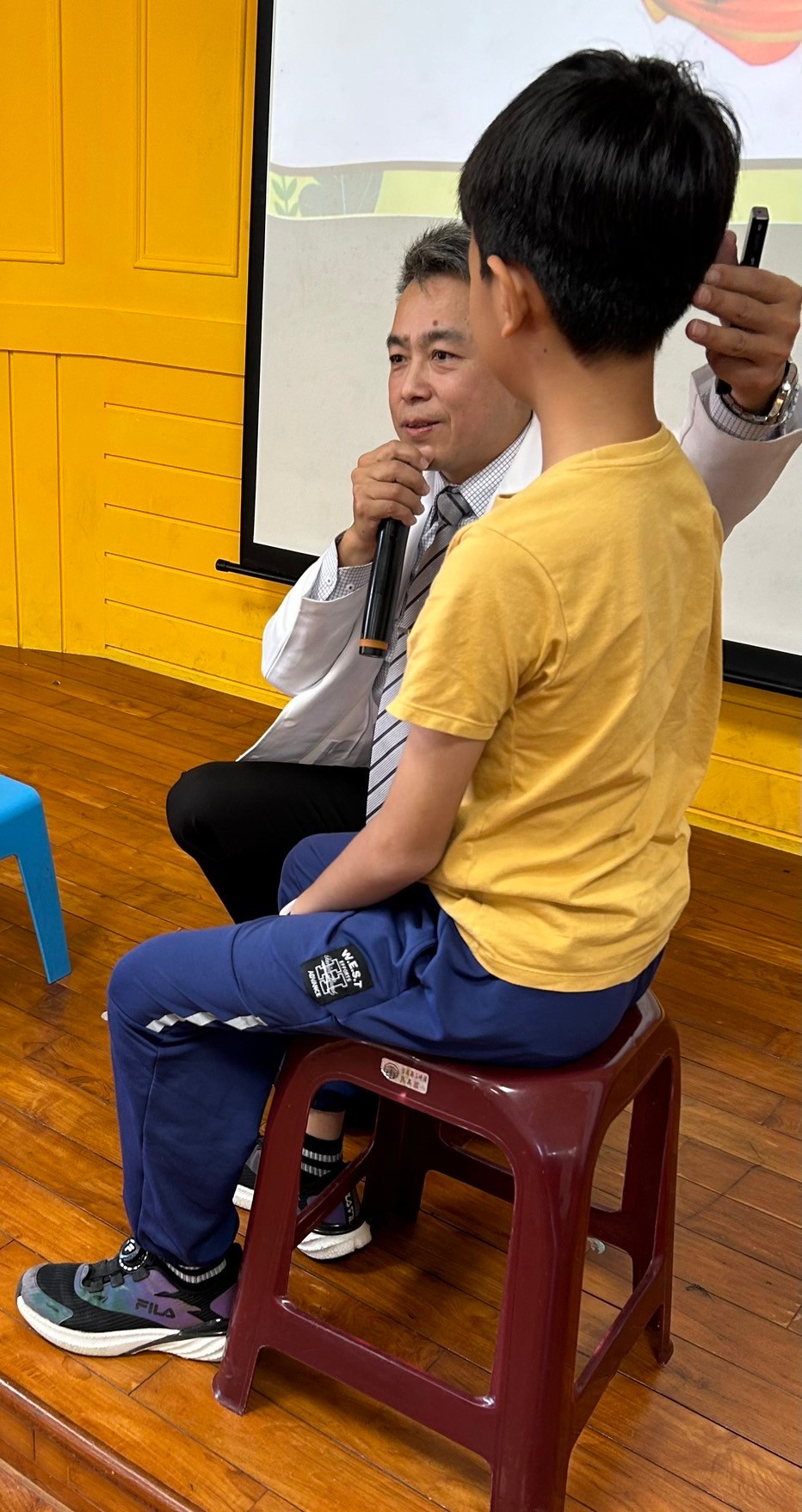 今天是護眼巡迴講座一天兩場,由理事長鐘鋕銘擔任講師,深入淺出地向學童們傳遞護眼健康的核心理念,讓孩子從小建立正確的視力保護觀念!