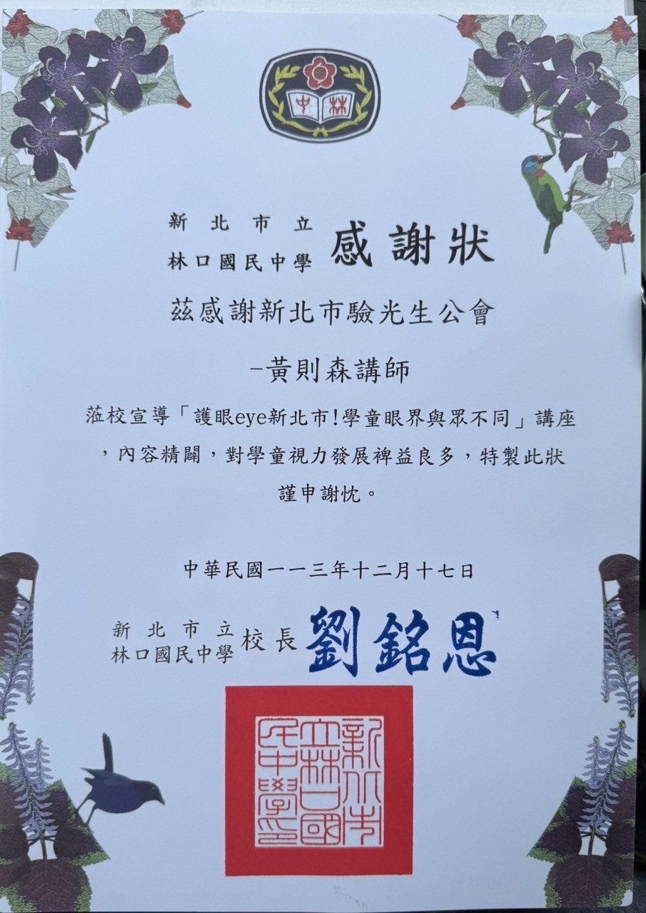 - 黃則森理事護眼分享初體驗:以專業角度剖析學童常見的視力問題,並提供實用的護眼技巧。
