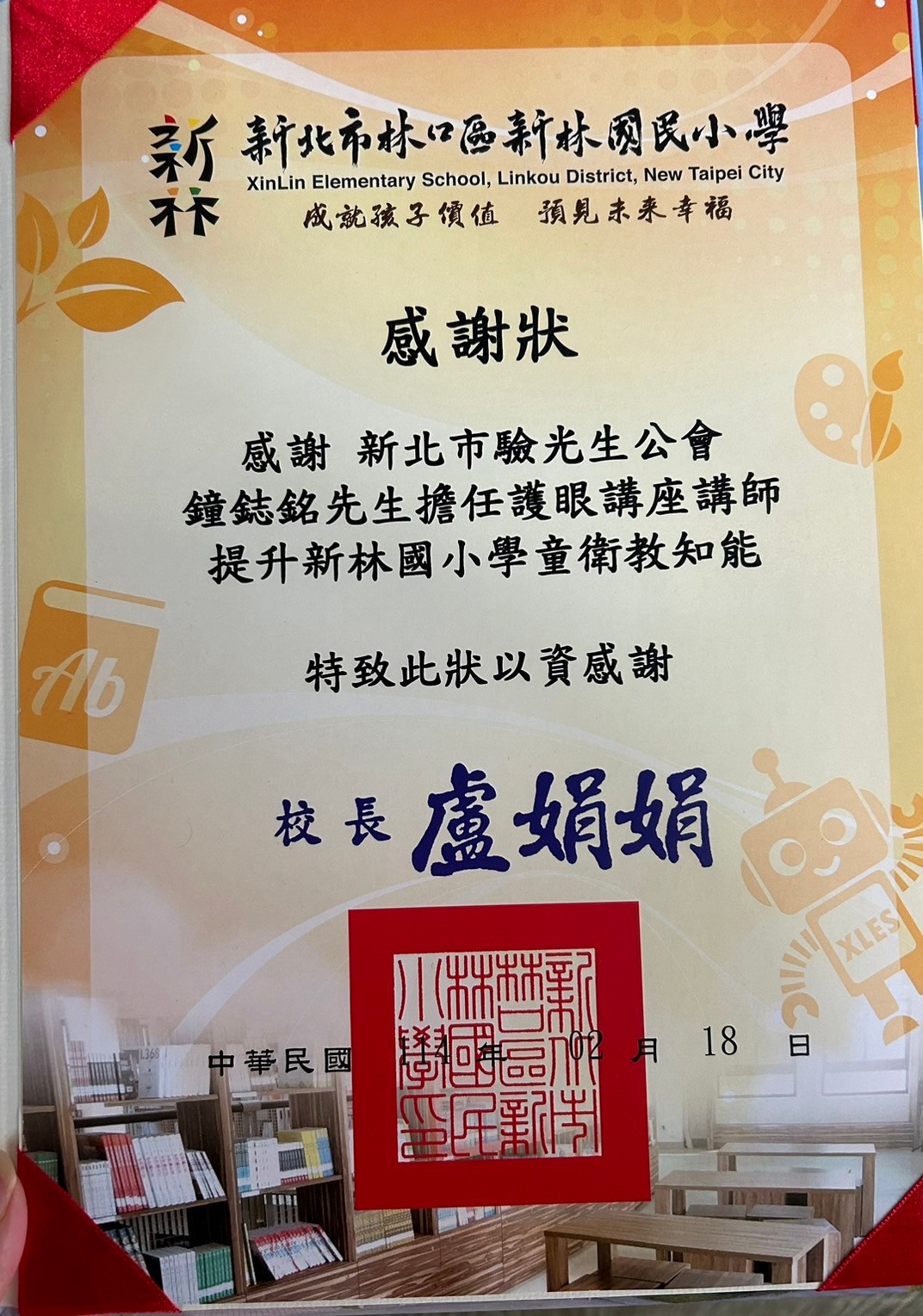 由理事長鐘鋕銘擔任講師,帶領學童學習視力保健的重要性,從日常習慣開始,守護每一雙明亮的眼睛????✨
