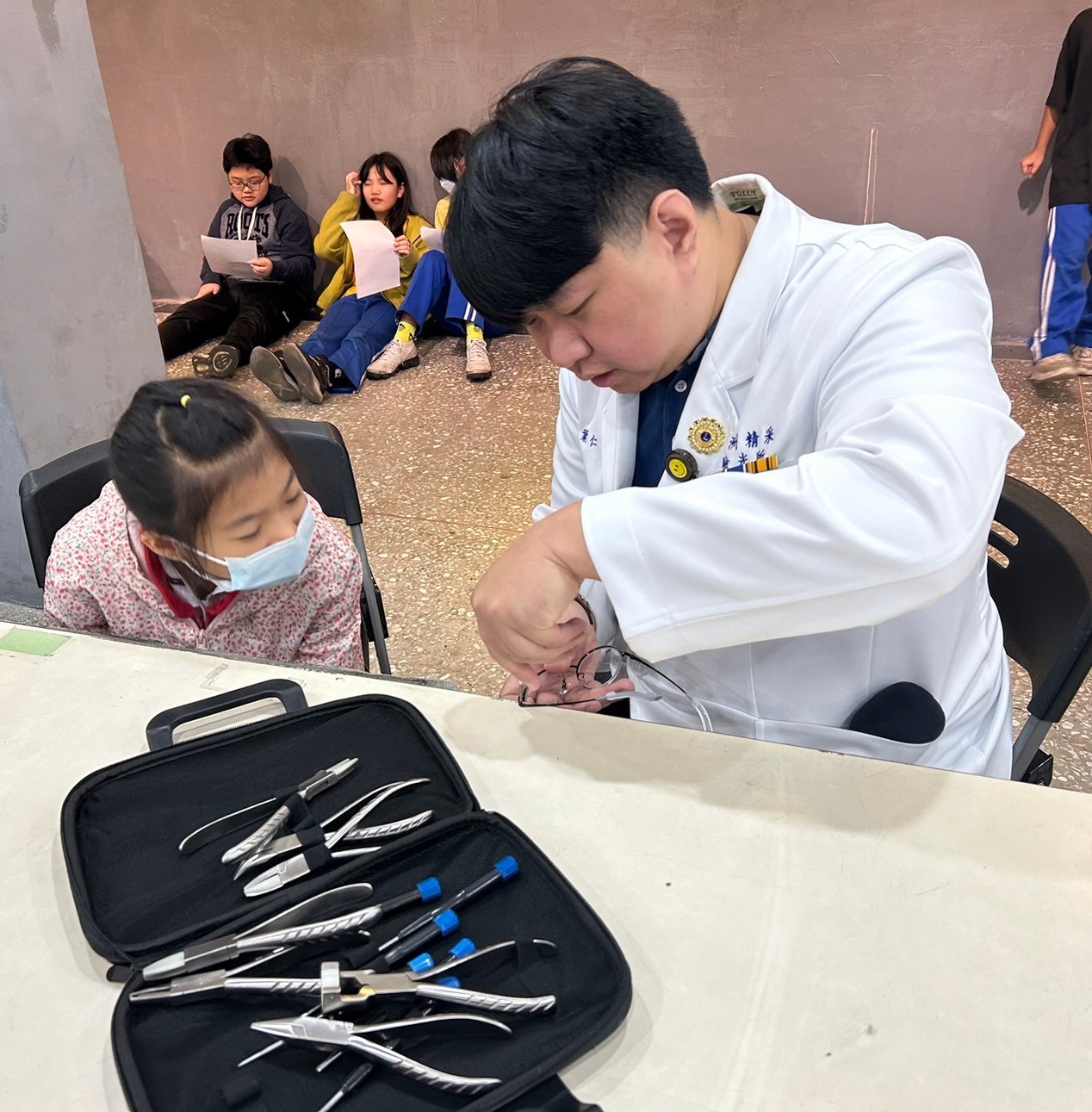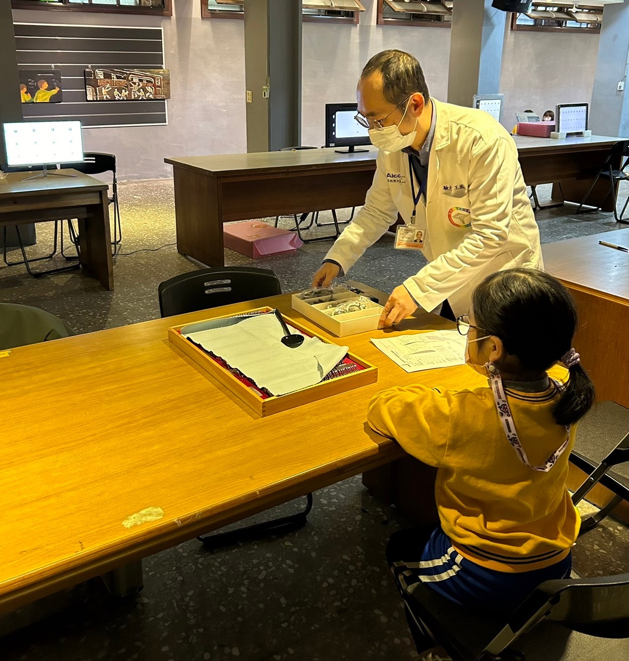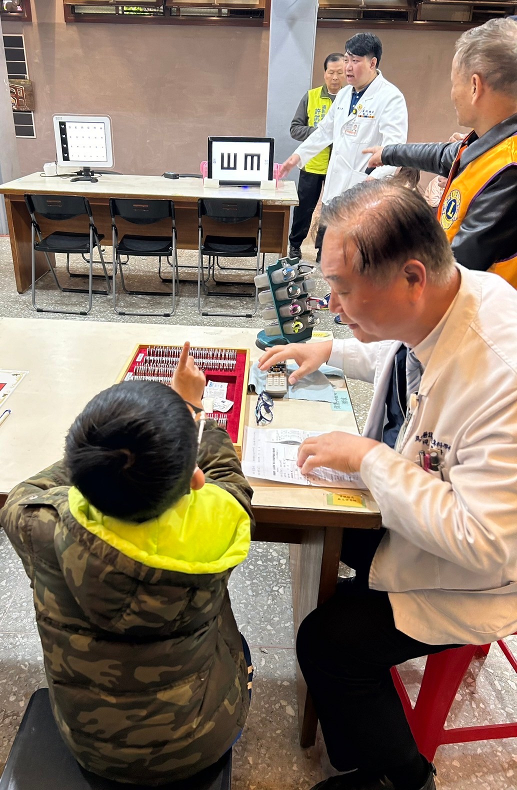 本次篩檢涵蓋自覺式驗光、他覺式驗光、原鏡視力測試、色盲篩檢、屈光檢查、利眼⋯多項檢測。在恩主公醫院王昱函醫師與本會專業團隊依照標準流程進行檢查,確保學童獲得準確的視力評估。醫師也特別提醒學童,養成良好的用眼習慣、定期檢查視力,才能有效預防近視與視力問題。驗光專業團隊們熱情協助,確保篩檢流程順暢,讓孩子們能夠輕鬆完成測試。