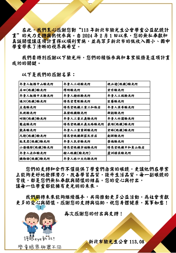 「護眼eye新北!學童眼界與眾不同」視力篩檢巡迴講座